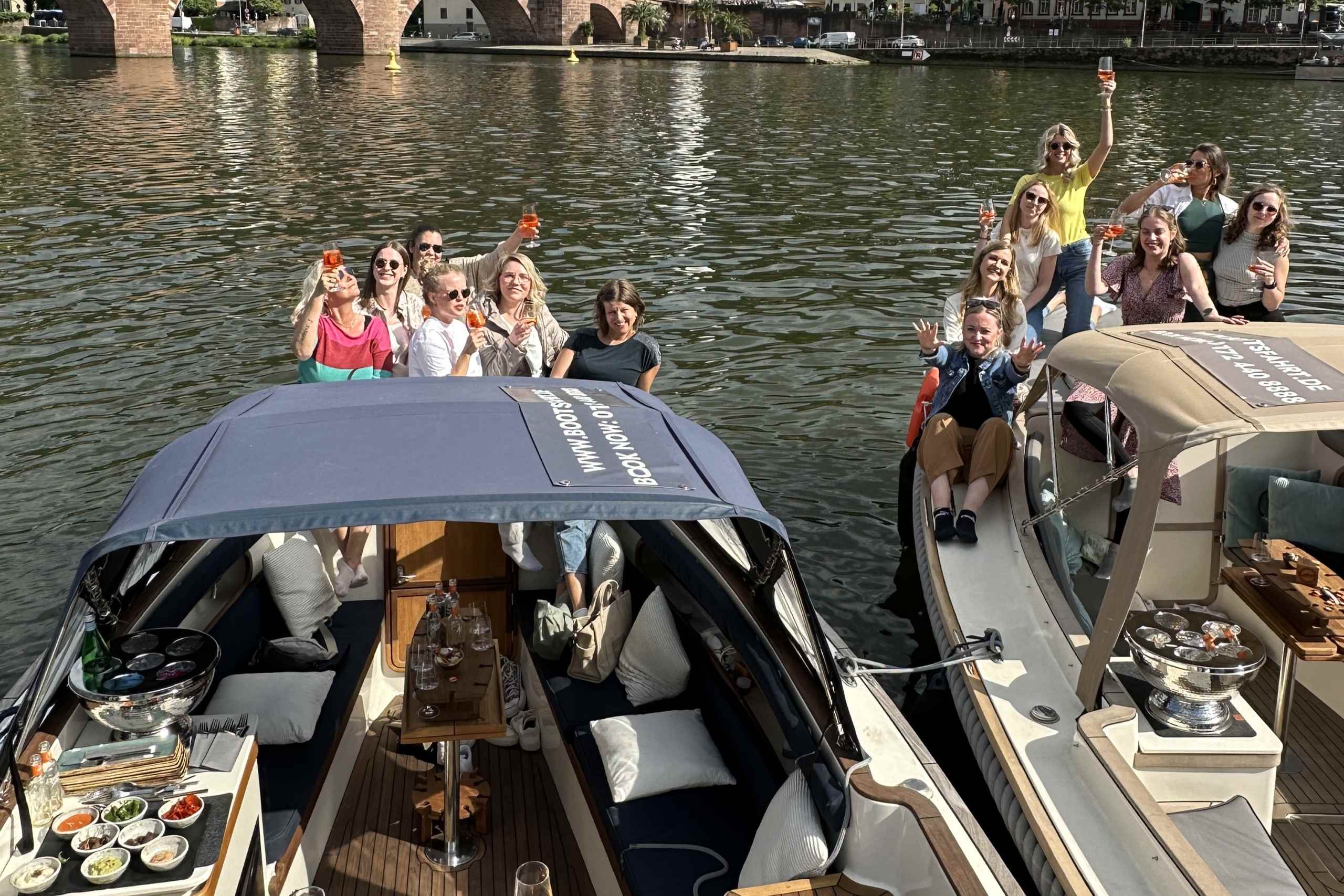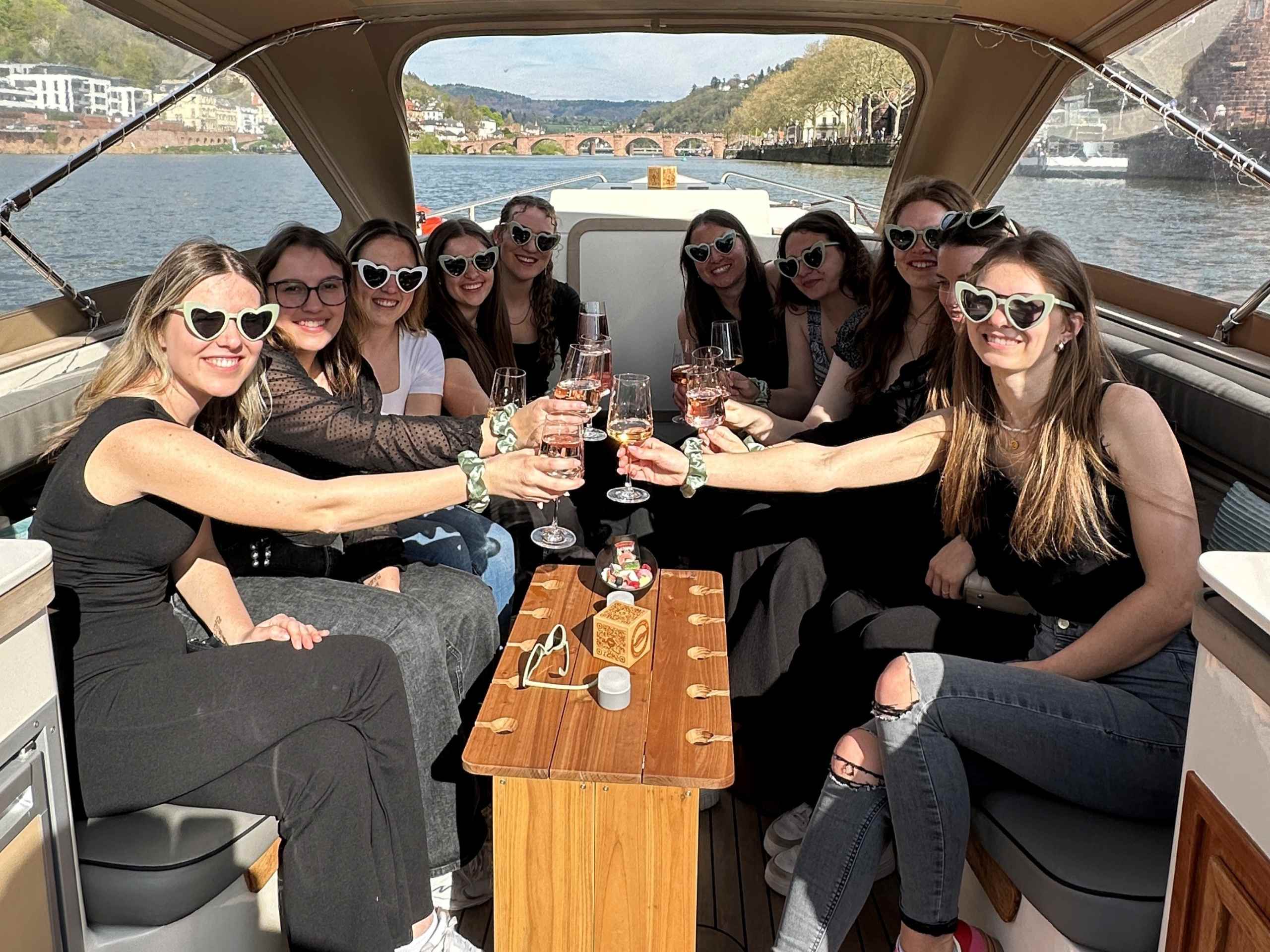 Bei JGAs besonders beliebt: Gruppenfotos von dir und deinen Mädels am Sonnendeck, mit der Alten Brücke oder dem Heidelberger Schloss im Hintergrund! Unsere Boote sind nicht nur eine mobile Party-Location, sondern auch die ideale Basis, um den Abend in der Unteren Straße – Heidelbergs bekannter Parteimeile – ausklingen zu lassen. So wird der JGA zu einem Event, an das ihr euch alle noch lange erinnern werdet!