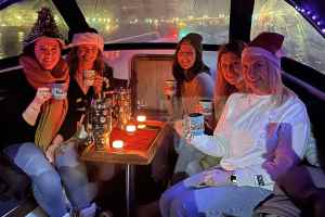 Unsere Boote bieten jeweils Platz für Gruppen von bis zu 12 Gästen. Für größere Teams und Weihnachtsfeiern mit bis zu 36 Personen können auch drei Boote gleichzeitig gebucht werden, die während der Fahrt miteinander verbunden werden und nebeneinander fahren – wie ein großes Boot. Ihr könnt euch unterhalten, Glühwein trinken und bei weihnachtlicher Stimmung selbst zwischen den Booten hin- und herwechseln. Auf den Booten ist reichlich Platz zum gemütlichen Beisammensein und Feiern.